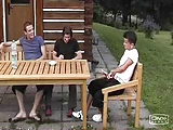 Schwuler Maler mit dickem Schwanz spritzt über dem Arsch eines anderen Jungen ab
